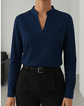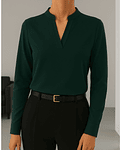 Blusa de Moda Con Cuello Alto en V y Manga Larga